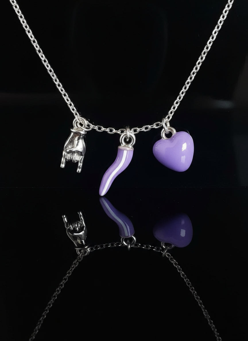 Charms a cuore e cornicello in acrilico