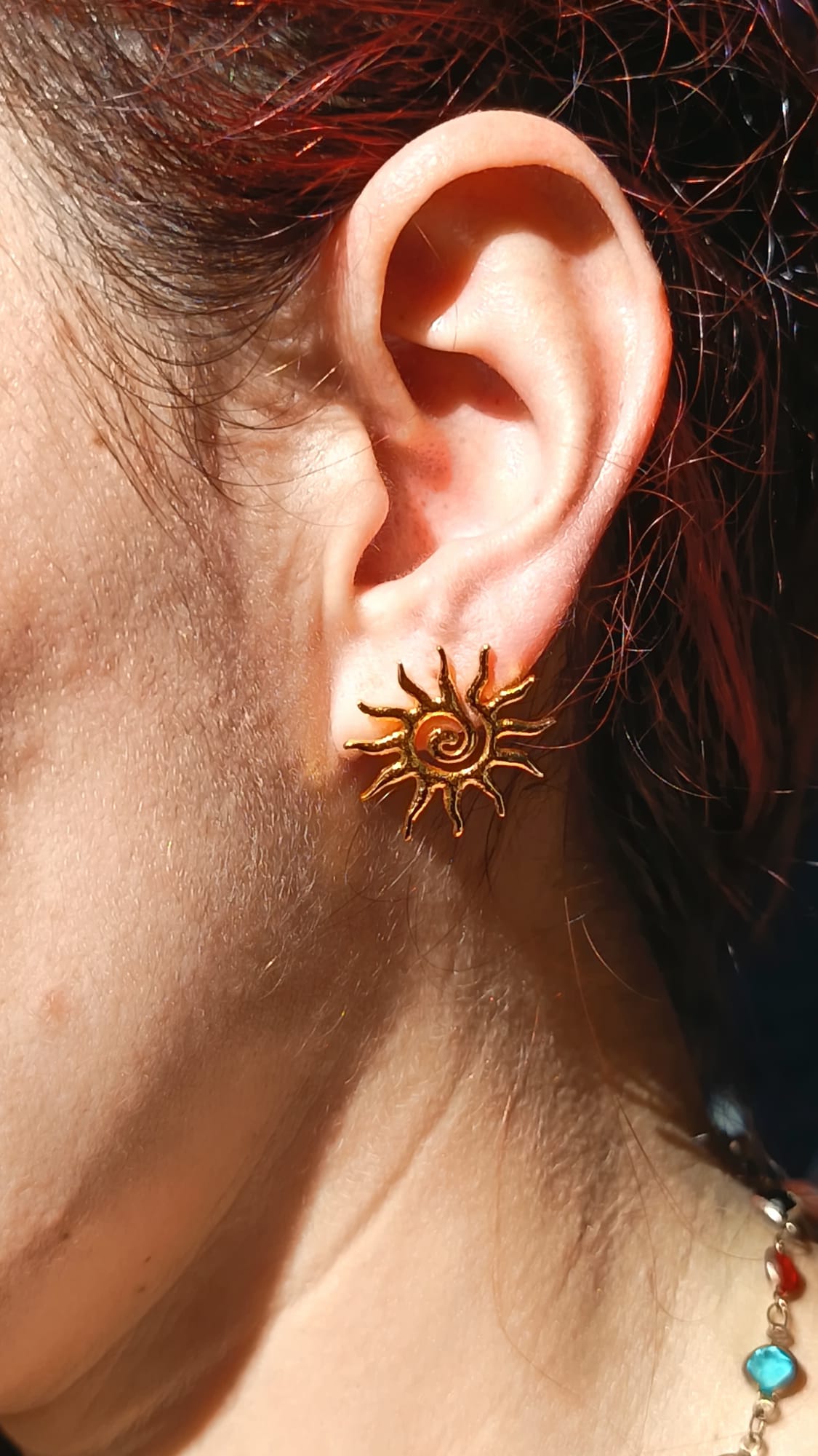 Dai un tocco di luce al tuo look con gli orecchini Spirale Solare. Ispirati al sole, con una forma a spirale stilizzata che cattura lo sguardo in ogni movimento.